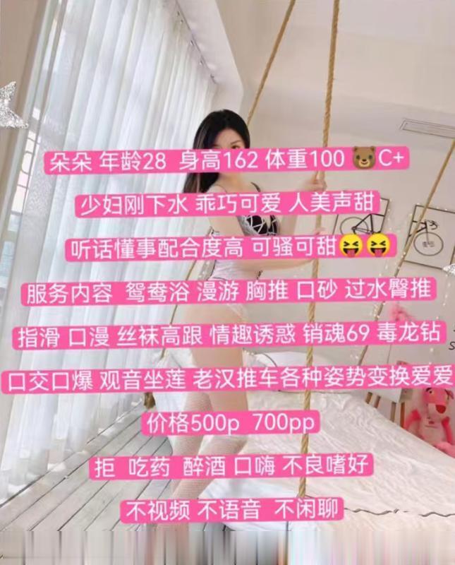 少妇一枚,身材方面腰臀比还不错,没什么多余赘肉,配上黑丝高跟女人味十足,ab面的服务做的很舒服不划水,配合度也高,不过分的重口服务都可以提出,老师很懂男人,眼神示意就能明白换姿势,服务态度没的说,水费方面5一课7两课,物超所值。