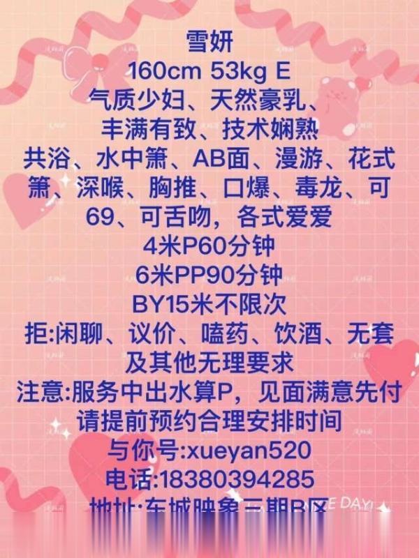 放假快结束了,这个小姐姐也休假回来了,正好回锅再造 进门首先给你一个大大的拥抱,老师温柔贴心,嘘寒问暖,慷慨激昂,热情奔放。很耐心细心,拖鞋马上给你准备好,洗洗鸳鸯浴。以后进入主题,按课行事,提枪进入,……缴械投降。主打一个有容乃大,波涛汹涌,值得回锅再造!