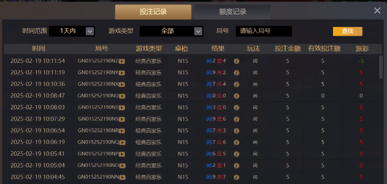 继续昨天的庄闲差距极端局,耐心等待终于逮到一局。