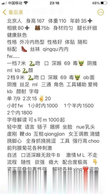 姐姐人照一致,一进门就很温柔的感觉,但是很大方,穿着丝袜和情趣内衣,而且房间有种很魅惑 的香味,让人有点儿上头。而且其他人都是一进门就让洗,香香是进门先让你坐下,先问你喝水还是饮料。我急着做就先去洗了。 之后就是开做,深喉是有活真做呀,第一次知道喉咙深处是硬邦邦的竟然是通过深喉,而且嘴唇包裹的肉感很足。我喜欢舔屄,所以做了69,没有异味,菊花也没有味道,虽然黑了一些,但是喜欢熟女的会喜欢这个颜色,屄上刚长出 的毛茬蹭在脸上很舒服。后面很紧,能感觉到括约肌箍住后,杰宝上根部比前面紧的反差。还有这里可以加一张无套,但是还是不建议做,安全第一。 总的来说还是很赞的,之后也会二刷,时间长的狼友可以考虑包小时,三通9张一次,但是1000包小时也能三通。 小黄文写作能力还在练,写的乱的地方请各位狼友海涵。