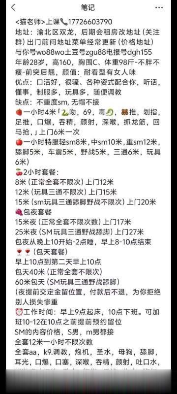主打的特色sm,你能想到的,想不到的服务都有,而且价格合适,母狗及其配合,还能满足你自己的独特癖好,走后门,吞精都不在话下,缺点就是因为太受欢迎,需要提前预约。
